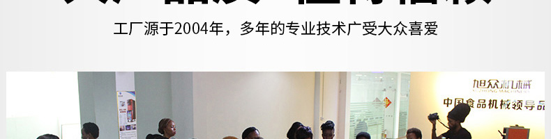 廣州旭眾食品機(jī)械有限公司是一家集科研開發(fā),生產(chǎn)設(shè)計,營銷服務(wù)為一體的現(xiàn)代化生產(chǎn)企業(yè)?,F(xiàn)代化生產(chǎn)車間,精湛制造技術(shù),所產(chǎn)機(jī)械歷經(jīng)市場重重考驗,不斷贏得海內(nèi)外客戶的贊譽(yù)。