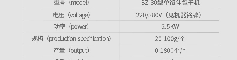 BZ-30型單餡斗包子機,可生產(chǎn)豆沙包、南瓜餅、肉包、小籠包、菜包、圓饅頭、奶黃包、叉燒包、湯包、水晶包等幾十種包餡制品。適用于個體戶、速凍食品廠、學校等各種工作場所??蓾M足不同客戶群體。免費提供工藝技術(shù)。
