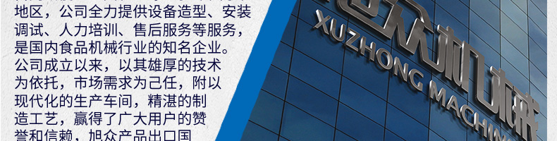 廣州旭眾食品機械有限公司是一家集科研開發(fā),生產(chǎn)設(shè)計,營銷服務為一體的現(xiàn)代化生產(chǎn)企業(yè)?,F(xiàn)代化生產(chǎn)車間,精湛制造技術(shù),所產(chǎn)機械歷經(jīng)市場重重考驗,不斷贏得海內(nèi)外客戶的贊譽。