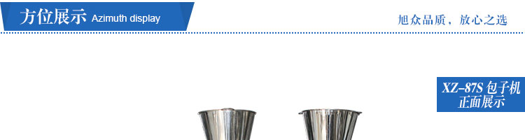XZ-87S型雙餡斗全自動包子機,可生產(chǎn)各種肉包、肉菜包、菜包、小籠包、湯包、水晶包、圓饅頭、奶黃包、豆沙包、叉燒包、南瓜餅等幾十種包餡制品。適用于賓館、飯店、學(xué)校、機關(guān)企業(yè)食堂、饅頭或包子加工廠、早餐工程店及速凍食品廠等單位??蓾M足不同客戶群體。免費提供工藝技術(shù)。免費上門培訓(xùn)指導(dǎo)安裝。