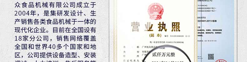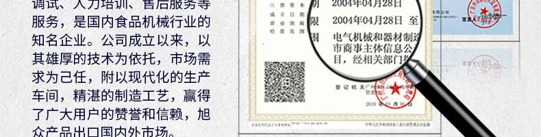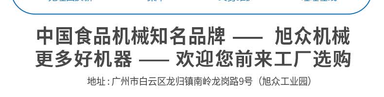 廣州旭眾食品機(jī)械有限公司是一家集科研開(kāi)發(fā),生產(chǎn)設(shè)計(jì),營(yíng)銷服務(wù)為一體的現(xiàn)代化生產(chǎn)企業(yè)。現(xiàn)代化生產(chǎn)車間,精湛制造技術(shù),所產(chǎn)機(jī)械歷經(jīng)市場(chǎng)重重考驗(yàn),不斷贏得海內(nèi)外客戶的贊譽(yù)。