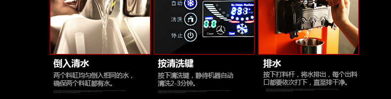 BQL-828立式冰淇淋機,1.選用國際牌壓縮機,輔以旭眾精湛工藝,大大縮短冰淇淋成型時間,高效節(jié)能;2.全新液晶智能觸控面板,簡單明了,多功能易操作;3.全新升級專業(yè)膨化泵,膨化率高,產(chǎn)量增加30%;4.一鍵清洗功能,省時方便;5.主要部件采用不銹鋼材質(zhì),時尚美觀,持久耐用;6.先進的機械攪拌系統(tǒng),機器運行穩(wěn)定可靠,低噪音,產(chǎn)品口感爽滑細(xì)嫩。