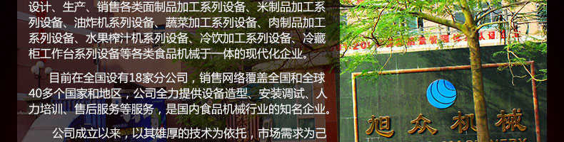 廣州旭眾食品機械有限公司是一家集科研開發(fā),生產(chǎn)設(shè)計,營銷服務(wù)為一體的現(xiàn)代化生產(chǎn)企業(yè)?,F(xiàn)代化生產(chǎn)車間,精湛制造技術(shù),所產(chǎn)機械歷經(jīng)市場重重考驗,不斷贏得海內(nèi)外客戶的贊譽。