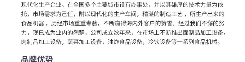 廣州旭眾食品機(jī)械有限公司是一家集科研開發(fā),生產(chǎn)設(shè)計(jì),營(yíng)銷服務(wù)為一體的現(xiàn)代化生產(chǎn)企業(yè)。現(xiàn)代化生產(chǎn)車間,精湛制造技術(shù),所產(chǎn)機(jī)械歷經(jīng)市場(chǎng)重重考驗(yàn),不斷贏得海內(nèi)外客戶的贊譽(yù)。