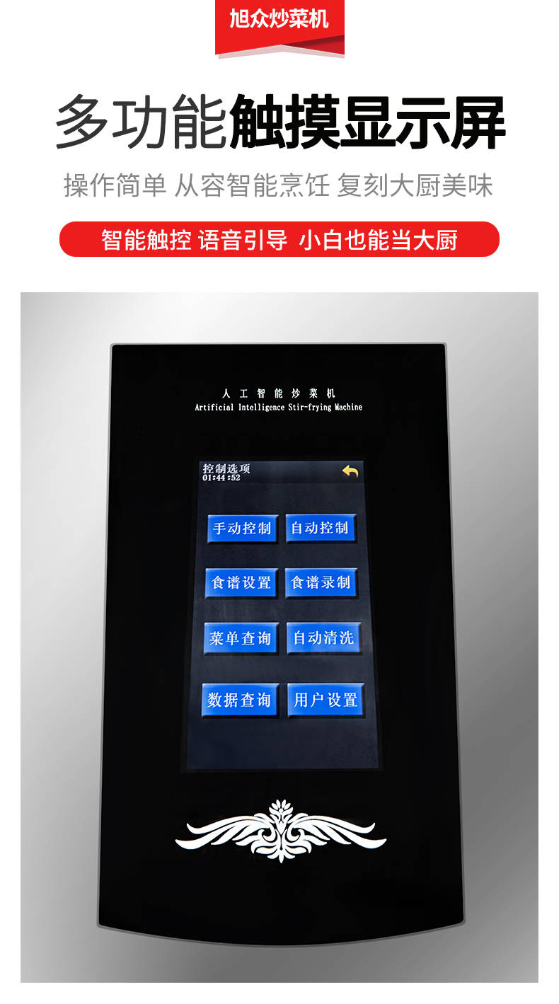 XZ-30TCP臺(tái)式300智能電磁炒菜機(jī)(觸屏+噴料),可以實(shí)現(xiàn)自動(dòng)化烹飪過(guò)程的智能化設(shè)備,語(yǔ)音播報(bào)、自動(dòng)噴料、旋轉(zhuǎn)翻炒、快速出菜。實(shí)現(xiàn)自動(dòng)化烹飪,新一代微電腦操控智能烹飪?cè)O(shè)備、顛覆傳統(tǒng)炒菜模式。5000W猛火爆炒美食更鮮香