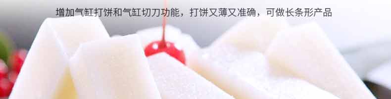 6000A無餡糍粑機,智能調(diào)控囿板,智能內(nèi)芯控制,可自由調(diào)節(jié)輸送,切刀和打餅的時間。調(diào)節(jié)自如拍扁成型,增加氣缸打餅和氣缸切刀功能,打餅又薄又準確,可做長條形產(chǎn)品
