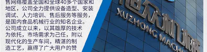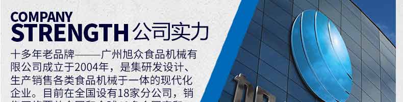 廣州旭眾食品機械有限公司是一家集科研開發(fā),生產(chǎn)設(shè)計,營銷服務(wù)為一體的現(xiàn)代化生產(chǎn)企業(yè)?,F(xiàn)代化生產(chǎn)車間,精湛制造技術(shù),所產(chǎn)機械歷經(jīng)市場重重考驗,不斷贏得海內(nèi)外客戶的贊譽。