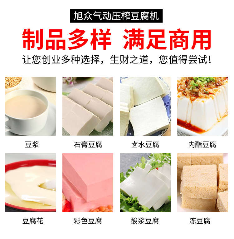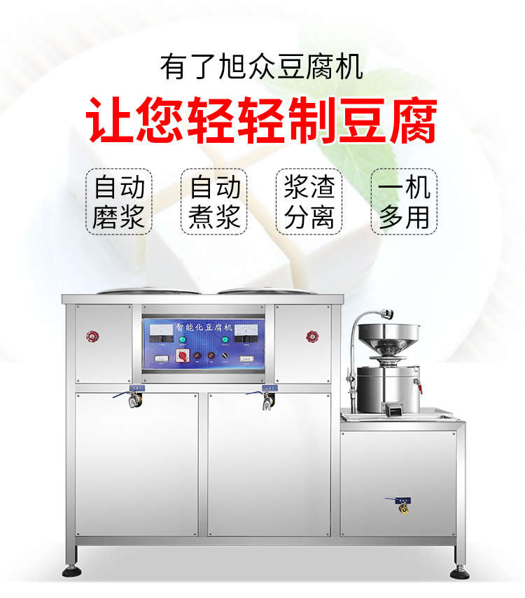 XZ-300型氣動壓榨豆腐機(jī),智能豆腐豆?jié){機(jī),雙桶煮漿高效生產(chǎn)現(xiàn)磨現(xiàn)煮,漿渣分離快速出漿。機(jī)器運行穩(wěn)定不銹鋼材質(zhì)打造,堅固耐用,安全衛(wèi)生,時尚大方,易于清洗。