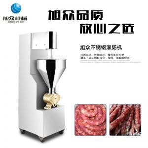 SZ-200灌腸機(jī),適合灌制各種香腸、紅腸、臘腸及糊狀制品。本機(jī)使用敞開式不銹鋼料斗,適用于連續(xù)添加物料;與灌裝手接觸部件全部采用優(yōu)質(zhì)不銹鋼制作以防生銹;該機(jī)自動貨程度高,技術(shù)先進(jìn)、性能穩(wěn)定、操作簡便、工作效率高,具有不破壞物料成份,保質(zhì)、保鮮等特點(diǎn)。