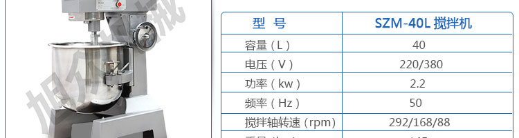 名稱SZM-40、50、60攪拌機(jī)系列 電源220/380V 220/380V 220/380V 功率2.2KW 2.6KW 3.5KW 產(chǎn)量 尺寸外形尺寸700*550*990mm 870*600*1170mm 900*620*1250mm 重量145kg 248kg 265kg 規(guī)格 其他
