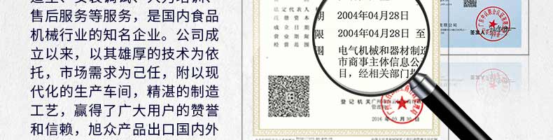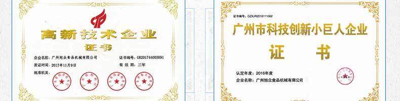 廣州旭眾食品機(jī)械有限公司是一家集科研開發(fā),生產(chǎn)設(shè)計(jì),營銷服務(wù)為一體的現(xiàn)代化生產(chǎn)企業(yè)?,F(xiàn)代化生產(chǎn)車間,精湛制造技術(shù),所產(chǎn)機(jī)械歷經(jīng)市場(chǎng)重重考驗(yàn),不斷贏得海內(nèi)外客戶的贊譽(yù)。