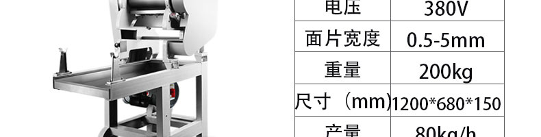 名稱60豪花型壓面面條機(jī) 電源220/380v 功率1.5kw-2.2kw 產(chǎn)量60-80kg/h 尺寸1000*510*118mm 重量111kg 規(guī)格 其他