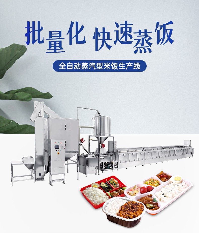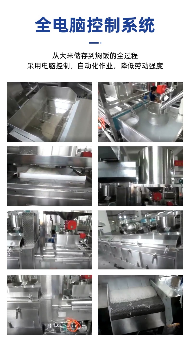 全自動蒸汽型米飯生產線,全電腦控制系統(tǒng),從大米儲存到燜飯的全過程采用電腦控制,自動化作業(yè),降低勞動強度。實現全自動生產,多功能,一機多用,可以用于在蒸制各種食物實現全自動生產,無需人工服務。