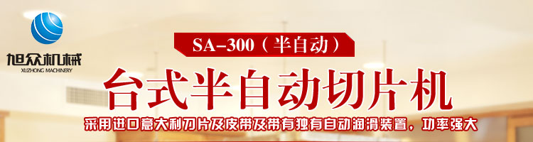 臺式半自動切片機(jī),適合切無骨肉類和其他類似榨菜帶有彈性的食物,把原材料肉切成肉片,并可自動成卷狀。可切牛肉片、羊肉片等