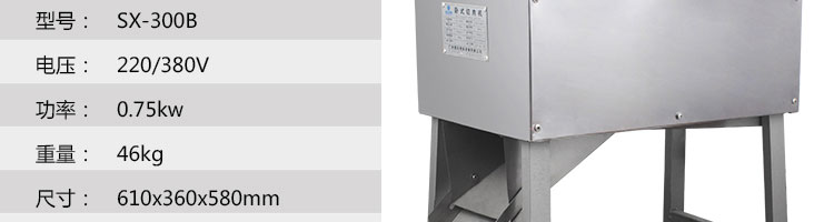名稱SX300B 臥式切肉機(jī) 電源220/380V 功率0.75kw 產(chǎn)量 尺寸610*360*580mm 重量46kg 規(guī)格 其他