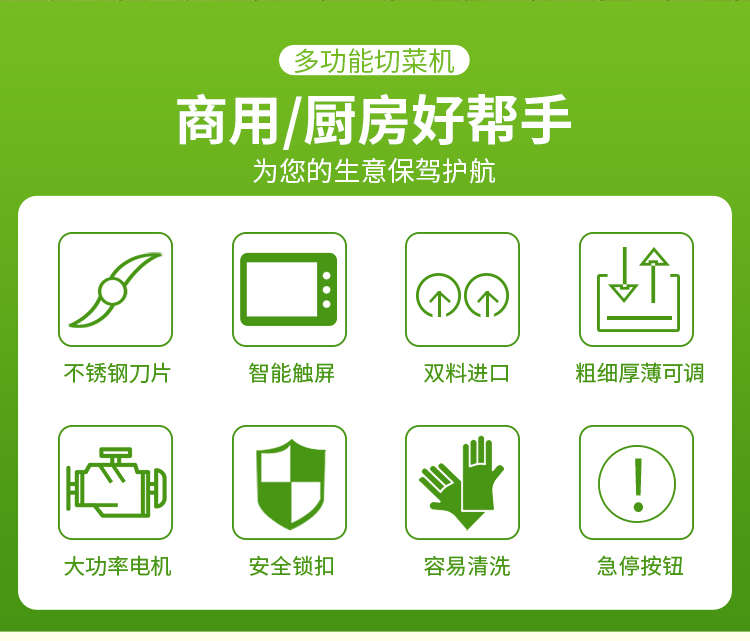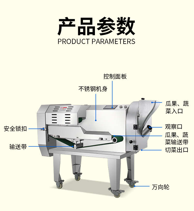 XZ-690A型多功能切菜機(jī),工作效率高,幫你省人工費(fèi)。1小時(shí)可切600kg-1600kg/h,1臺(tái)機(jī)器等于多名廚師同時(shí)為您工作。一機(jī)多用,可切瓜果、蔬菜、藥材,刀片可進(jìn)行更換,設(shè)計(jì)周到,結(jié)構(gòu)合理,簡單輕松應(yīng)對(duì)。