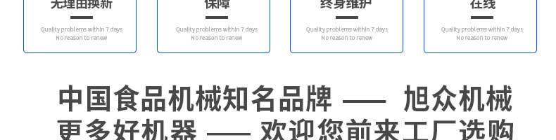 廣州旭眾食品機(jī)械有限公司是一家集科研開發(fā),生產(chǎn)設(shè)計(jì),營銷服務(wù)為一體的現(xiàn)代化生產(chǎn)企業(yè)?,F(xiàn)代化生產(chǎn)車間,精湛制造技術(shù),所產(chǎn)機(jī)械歷經(jīng)市場重重考驗(yàn),不斷贏得海內(nèi)外客戶的贊譽(yù)。