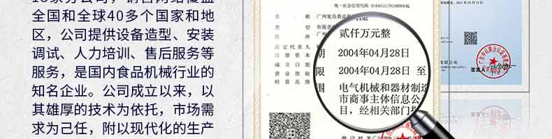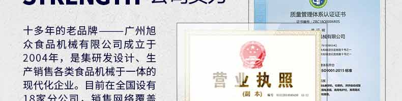 廣州旭眾食品機(jī)械有限公司是一家集科研開(kāi)發(fā),生產(chǎn)設(shè)計(jì),營(yíng)銷(xiāo)服務(wù)為一體的現(xiàn)代化生產(chǎn)企業(yè)?,F(xiàn)代化生產(chǎn)車(chē)間,精湛制造技術(shù),所產(chǎn)機(jī)械歷經(jīng)市場(chǎng)重重考驗(yàn),不斷贏得海內(nèi)外客戶的贊譽(yù)。