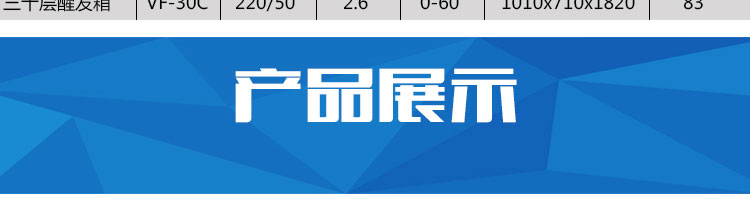 名稱VF多層面包醒發(fā)箱系列 電源220V/50Hz 220V/50Hz 220V/50Hz 220V/50Hz 功率2.3kw 2.3kw 2.6kw 2.6kw 產(chǎn)量 尺寸外形尺寸500*710*1550mm 500*710*1820mm 1010*710*1550mm 重量36kg 40kg 70kg 83kg 規(guī)格 其他