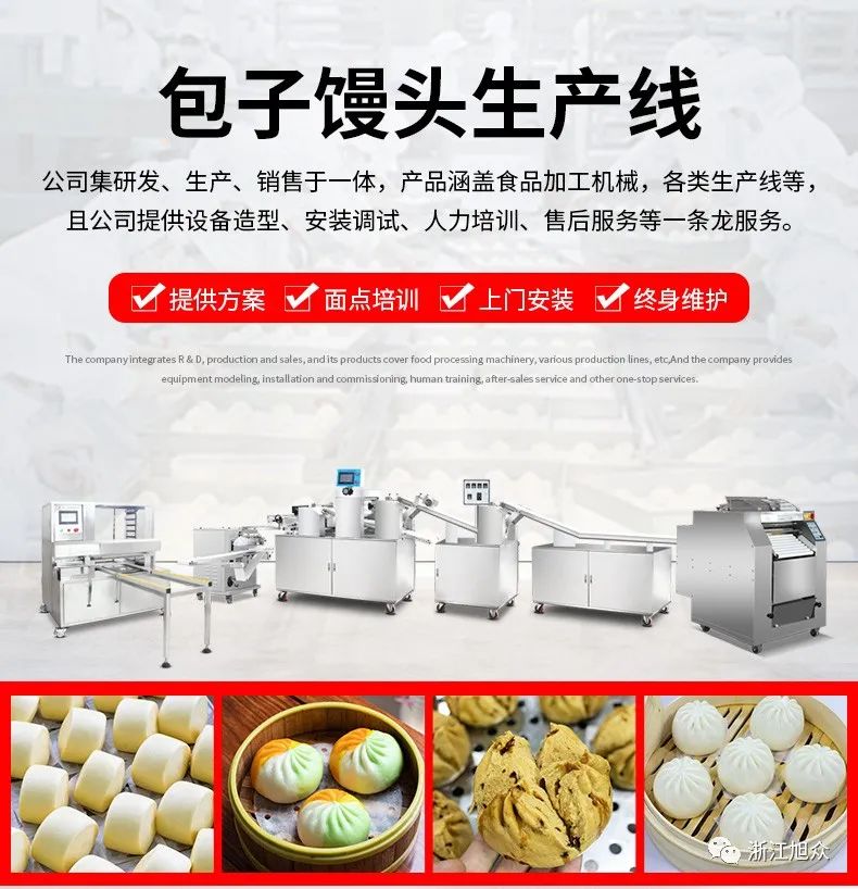 智能包子饅頭生產(chǎn)線,功能多樣,通過不同機(jī)型的組合,可以實(shí)現(xiàn)制作帶褶的包子、饅頭;光滑的包子、饅頭和方形饅頭或者做多彩包子饅頭等。
