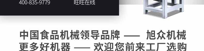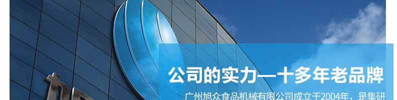 廣州旭眾食品機械有限公司是一家集科研開發(fā),生產(chǎn)設(shè)計,營銷服務(wù)為一體的現(xiàn)代化生產(chǎn)企業(yè)。現(xiàn)代化生產(chǎn)車間,精湛制造技術(shù),所產(chǎn)機械歷經(jīng)市場重重考驗,不斷贏得海內(nèi)外客戶的贊譽。