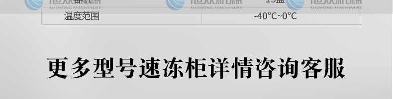 XZ-E10速凍柜,凍力十足急速降溫溫度可達(dá)零下40C。食品級不銹鋼,優(yōu)質(zhì)鋼材、防銹耐腐蝕。商用后廚環(huán)境下,長久耐用。微電腦智能控溫按鈕控制-精準(zhǔn)顯示。