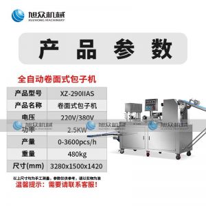 290IIAS卷面式包子機(jī),可生產(chǎn)各種不同餡料的包子、各式包餡食品,如豆沙包、南瓜餅、肉包、小籠包、水晶包等幾十種包餡制品。適用于個體戶、食品廠、學(xué)校等單位食堂??蓾M足不同客戶群體。免費提供工藝技術(shù)。