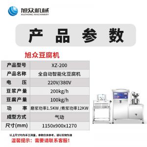XZ-300型氣動壓榨豆腐機(jī),智能豆腐豆?jié){機(jī),雙桶煮漿高效生產(chǎn)現(xiàn)磨現(xiàn)煮,漿渣分離快速出漿。機(jī)器運行穩(wěn)定不銹鋼材質(zhì)打造,堅固耐用,安全衛(wèi)生,時尚大方,易于清洗。