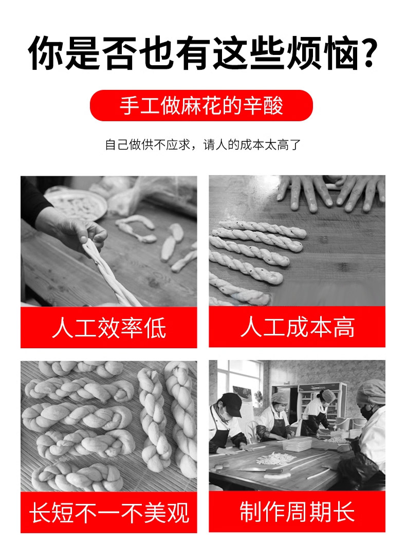 XZ-MH-200麻花機,技術支持、贈送配方、支持定制,1小時加工60斤麻花。切段均勺、且不粘面,麻花長短可調??赏ㄟ^調節(jié)切刀時間、控制麻花的長度。通過精確控制成型,確保每根麻花大小均勻,外觀一致,提高產(chǎn)品競爭力。