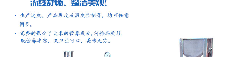 SZ-HF-150高效節(jié)能河粉機,用高效節(jié)能河粉機生產(chǎn)的河粉,完整保全了大米的營養(yǎng)成分,河粉品質(zhì)一流,既營養(yǎng)豐富,又衛(wèi)生可口、美味無窮。