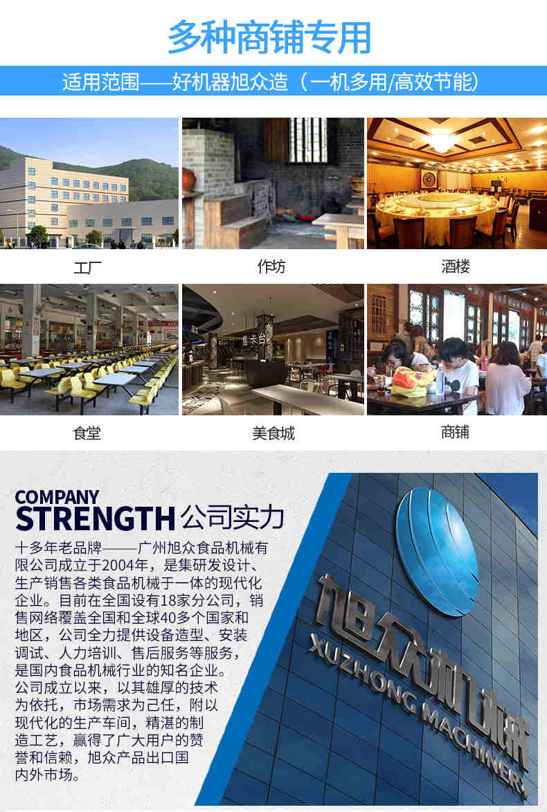 廣州旭眾食品機械有限公司是一家集科研開發(fā),生產(chǎn)設計,營銷服務為一體的現(xiàn)代化生產(chǎn)企業(yè)?,F(xiàn)代化生產(chǎn)車間,精湛制造技術,所產(chǎn)機械歷經(jīng)市場重重考驗,不斷贏得海內外客戶的贊譽。
