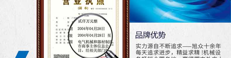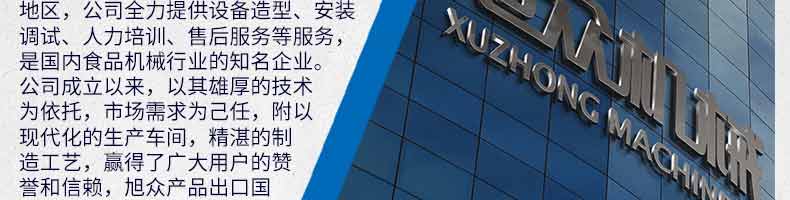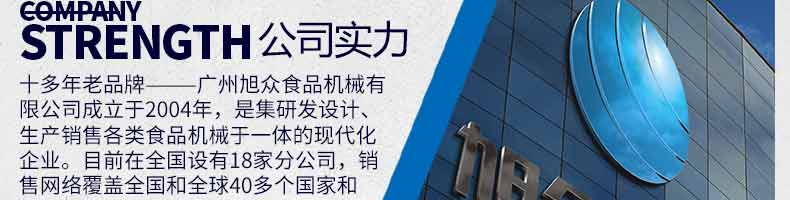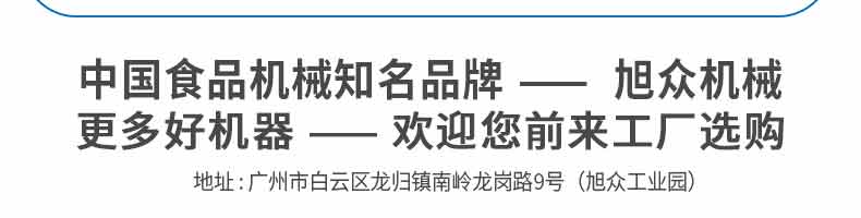 廣州旭眾食品機(jī)械有限公司是一家集科研開(kāi)發(fā),生產(chǎn)設(shè)計(jì),營(yíng)銷服務(wù)為一體的現(xiàn)代化生產(chǎn)企業(yè)?,F(xiàn)代化生產(chǎn)車間,精湛制造技術(shù),所產(chǎn)機(jī)械歷經(jīng)市場(chǎng)重重考驗(yàn),不斷贏得海內(nèi)外客戶的贊譽(yù)。
