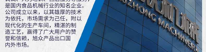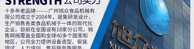 廣州旭眾食品機(jī)械有限公司是一家集科研開發(fā),生產(chǎn)設(shè)計,營銷服務(wù)為一體的現(xiàn)代化生產(chǎn)企業(yè)?,F(xiàn)代化生產(chǎn)車間,精湛制造技術(shù),所產(chǎn)機(jī)械歷經(jīng)市場重重考驗(yàn),不斷贏得海內(nèi)外客戶的贊譽(yù)。