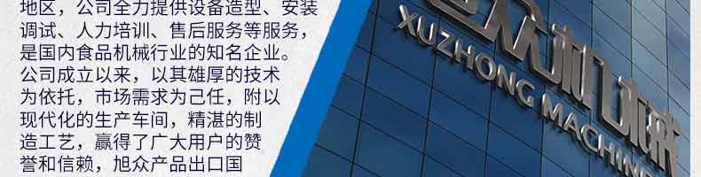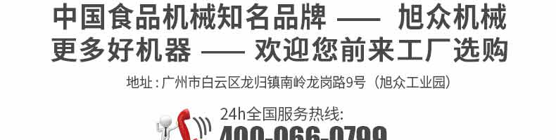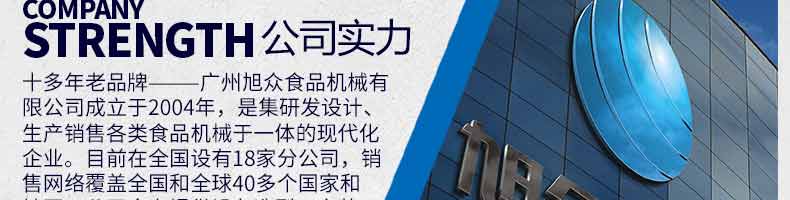 廣州旭眾食品機(jī)械有限公司是一家集科研開發(fā),生產(chǎn)設(shè)計,營銷服務(wù)為一體的現(xiàn)代化生產(chǎn)企業(yè)。現(xiàn)代化生產(chǎn)車間,精湛制造技術(shù),所產(chǎn)機(jī)械歷經(jīng)市場重重考驗(yàn),不斷贏得海內(nèi)外客戶的贊譽(yù)。