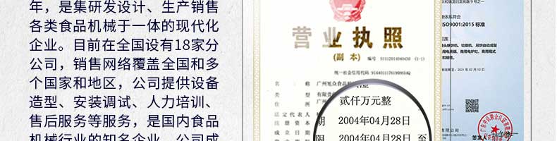 廣州旭眾食品機(jī)械有限公司是一家集科研開發(fā),生產(chǎn)設(shè)計(jì),營銷服務(wù)為一體的現(xiàn)代化生產(chǎn)企業(yè)?,F(xiàn)代化生產(chǎn)車間,精湛制造技術(shù),所產(chǎn)機(jī)械歷經(jīng)市場重重考驗(yàn),不斷贏得海內(nèi)外客戶的贊譽(yù)。