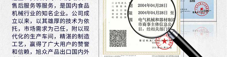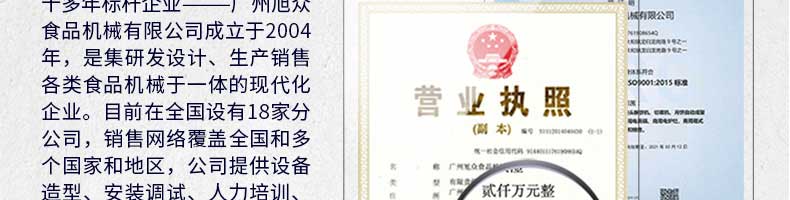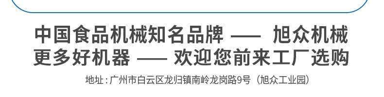 廣州旭眾食品機(jī)械有限公司是一家集科研開發(fā),生產(chǎn)設(shè)計(jì),營(yíng)銷服務(wù)為一體的現(xiàn)代化生產(chǎn)企業(yè)?,F(xiàn)代化生產(chǎn)車間,精湛制造技術(shù),所產(chǎn)機(jī)械歷經(jīng)市場(chǎng)重重考驗(yàn),不斷贏得海內(nèi)外客戶的贊譽(yù)。
