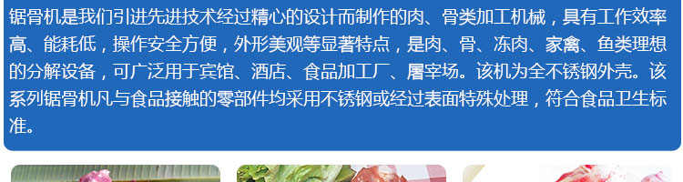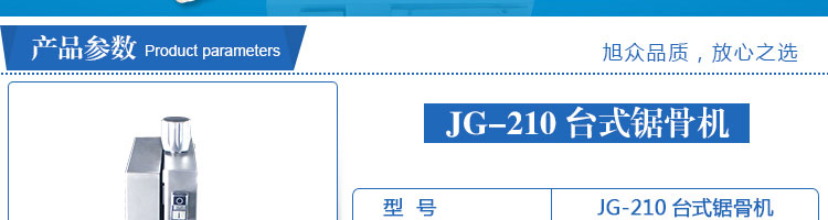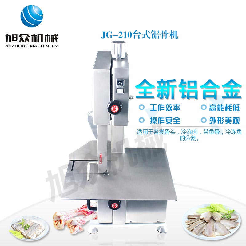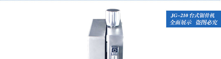 JG-210臺(tái)式鋸骨機(jī),適用于各類(lèi)骨頭,冷凍肉,帶魚(yú)骨,冰塊,冷凍魚(yú)的分割。采用全不銹鋼材料制作,具有工作效率高,操作安全的特點(diǎn)。廣泛適用于食品加工廠(chǎng),屠宰場(chǎng),肉類(lèi)加工廠(chǎng)等