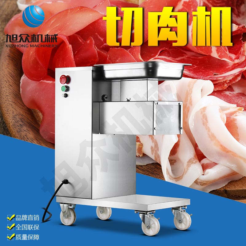 XZ-QE切肉機,是一款可方便移動的肉類加工設(shè)備,配置單層刀具一次性切肉片,二次切肉絲,再切成粒。底座設(shè)置有滑輪,移動靈活,輕松便捷;刀具采取外置懸臂式設(shè)計,拆洗方便,衛(wèi)生更有保障;配置多種刀具,可加工不同厚度的肉片,實現(xiàn)一機多用;機內(nèi)裝有安全保護開頭,刀具外露時,機器自鎖不能啟動,以保安全;刀片用特殊不銹鋼材料制造,經(jīng)久耐用;卸下的刀具,不用清洗直接放置在6攝氏度以下的冰箱里,刀具余肉不發(fā)臭。