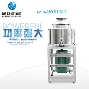 SZ-22型肉丸打漿機,本機裝肉用桶子采用不銹鋼制造,達到衛(wèi)生要求,肉桶外罩和桶底裝有冷卻裝置,確保肉漿新鮮。比手工的打漿更精細,所產(chǎn)肉丸、魚丸彈性好,色澤潔白。