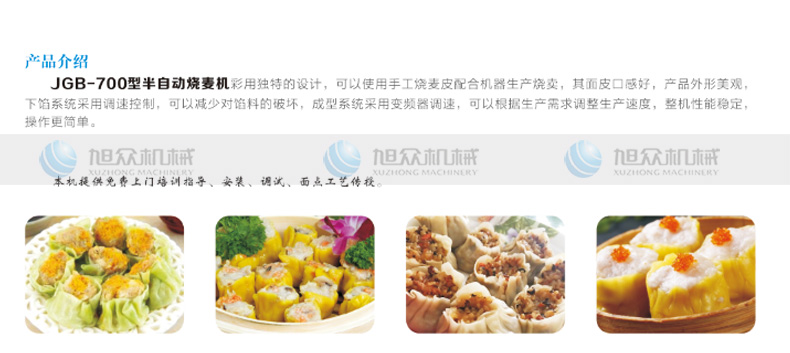 JGB-700燒麥機(jī),采用特的設(shè)計(jì),可以使用手工燒麥皮配合機(jī)器生產(chǎn)燒賣,其面皮口感好,產(chǎn)品外形美觀下餡系統(tǒng)采用調(diào)速控制,可以減少對(duì)餡料的破壞,成型系統(tǒng)呆用變頻器調(diào)速,可以根據(jù)生產(chǎn)需求調(diào)整生產(chǎn)速度,整機(jī)性能穩(wěn)定操作更簡(jiǎn)單
