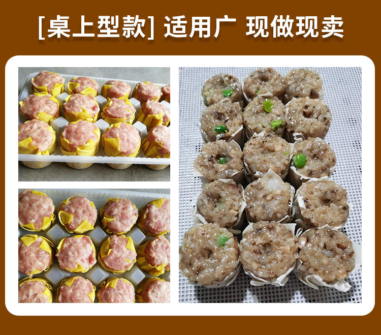 JGB-600燒麥機,自動填餡包皮功能:臺式半自動單聯(lián)式燒麥成型機,可以使用手工燒麥皮配合機器生產(chǎn)燒賣,其面皮口感好,產(chǎn)品外形美觀。餡料多與少可調(diào)節(jié)高效率1800個小時