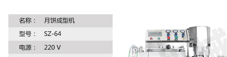 SZ-64月餅自動(dòng)成型機(jī),可同于制作各種月餅,適合印制各種月餅。適用于蛋糕房、休閑食品廠、食品加工產(chǎn)、面包房、月餅加工廠、超市、學(xué)校、食堂等各種工作場(chǎng)所。可滿足不同客戶群體。免費(fèi)提供工藝技術(shù)。